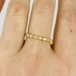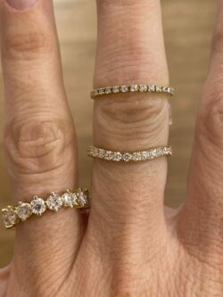 Les alliances diamants peuvent être réalisées sur mesure, vous choisissez la taille des pierres ainsi que leur nombre. Nous réalisons également des alliances tout or, vous pouvez les essayer à la boutique pour choisir la forme, l’épaisseur, la largeur et la couleur qui vous correspondent.